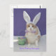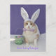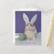 Postal de personalizable con Bubba Kitty con orejas de conejito, piel blanca falsa y corbata de polika de lavanda. Puede cambiar el texto.