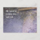Esta postal muestra una foto de primer plano de gotas de lluvia cayendo en el agua, con musgo y piedras visibles debajo de la superficie. Dice: "Todo lo que necesito es un día lluvioso, y tú". Romántico y dulce.