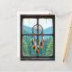 Postal Un Dreamcatcher en una ventana con vistas a las mo