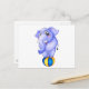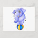 Ilustracion de un elefante sobre la bola de rebote sobre un fondo blanco