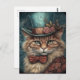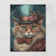 Un lindo gato jengibre con una fantasía de tophat azul de IA generó arte
