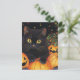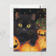 Postal Un gato negro lindo en las calabazas de Halloween