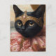 Postal Un gato negro real en rosa y oro