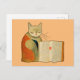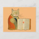 Postal Un gato simple leyendo un libro