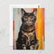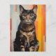 Un gato tabby marrón sobre un fondo colorido abstracto de IA generado por arte