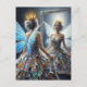 Una linda hada muestra su vestido hecho de envases de productos reciclados y recuperados mientras mira su reflejo en un espejo de arte de fantasía