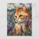 Postal Un hermoso gato jengibre en un campo de lavanda