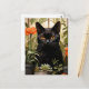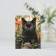 Postal Un hermoso gato negro suculentas y flores