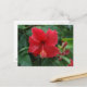 Fotografía de una sola flor de hibiscos rojos, brotes y hojas verdes abiertas y delicadas en un sendero de la selva tropical caribeña. ¡Sueña con un paraíso tropical!