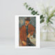 Postal Un hombre sentado sobre una mesa