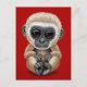 Postal Un lindo y curioso bebé Gibbon en rojo