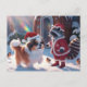 Postal Un mapache lindo y Navidades festivos de perros mu