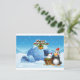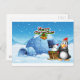 Postal Un muñeco de nieve y un pingüino frente al iglú