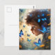 Postal Un niño pequeño y una mariposa azul