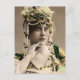 Fotografía vintage de una joven con un gorra decorado con bucles y cuerdas de perlas. No es un aspecto a emular