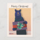 Postal 💕 Un oso llevando un collar sostiene un regalo de