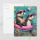 Unas adorables vacaciones de una pareja de nutrias en un lindo anillo rosa inflable flotante mientras se enfría en un río flotan un estilo mediático mixto IA generó collage