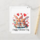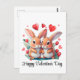 Un par de divertidos conejos acuarelas rodeados de flores y corazones. Un maravilloso regalo El día de San Valentín para una pareja enamorada. La inscripción en el producto: Feliz Día de San Valentín