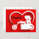 Motocicleta de par en par gracias, gracias postal en rojo, blanco y negro