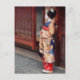Pintura digital de maiko japonés (geisha en entrenamiento) frente a una casa tradicional de madera de Kioto.