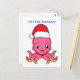 Postal Un pulpo alegre lindo usando Navidades gorra perso