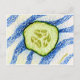 Dibujo a lápiz y pluma de una rebanada de un pepino sobre un mantel.