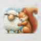 Postal Una ardilla suave abraza a una oveja