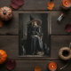 Postal Una bruja y sus gatos
