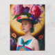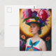 Postal Una dama con un sombrero de sol floral