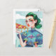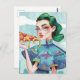 Postal Una mujer con una rebanada de camiseta de OVNI de