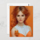 Una hermosa mujer de cabello largo vestida de blanco y naranja con un estilo de pintura de fondo naranja