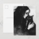 Postal Una mujer y su gato negro