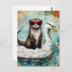 Una nutria adorable en vacaciones de gafas de sol en un lindo cisne flotante mientras se enfría en un río flotando un collage generado por IA de estilo mediático mixto