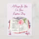 Una oración para un Bautizo. Un delicado capullo de rosa rosa sobre una biblia abierta. Ponga su propia oración dentro.