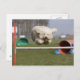 Postal Una perrera de agua portuguesa saltando sobre un o