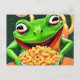 Postal Una rana divertida con fideos de macarrones