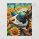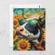 Postal Una vaca con gafas de sol en un campo de girasol