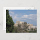 Una vista de la acrópolis de la colina de Filopappou es la vista de la acrópolis de la colina de Filopappou. Los olivos en el primero plano y el fondo son la acrópolis, según lo visto de la colina de Filopappou. Esta vez la foto de la acrópolis es más grande y en el centro.