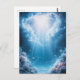 This breathtaking design features a serene and magical underwater sanctuary where the deep blue of the ocean meets a brilliant, heavenly light. Rendered in a lush, textured watercolor style, the scene captures a radiant sunburst breaking through the surface of the water, casting powerful beams of light down into the depths. The seabed is adorned with intricate clusters of pale blue and soft lavender coral formations, appearing like frozen plumes of smoke against the dark turquoise water. Tiny, shimmering white fish dart through the light beams, while sparkling bubbles and distant stars seem to mingle in the water, creating a dreamlike and peaceful atmosphere. The overall aesthetic is tranquil, majestic, and full of natural wonder, making it an exceptional choice for scuba diving enthusiasts and lovers of artistic marine life. This elegant coral reef postcard is a perfect choice for sending a calming "thinking of you" note or a meaningful greeting to a friend who finds peace by the sea. You might choose to use this artistic card for a beach-themed wedding invitation or to celebrate a professional achievement with a touch of deep-sea elegance for your colleagues. It also makes a beautiful decorative piece for a bathroom wall or a stylish addition to a travel journal as a small token of oceanic beauty. This versatile design is also an excellent choice for a housewarming message, a graduation thank you note, or as a heartwarming way to share a message of joy for any situation or event.