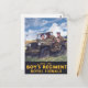 Este histórico poster de reclutamiento cuenta con soldados del Regimiento Real de Señales que viajan en un jeep militar por el campo, con helicópteros que sobrevuelan bajo un cielo brillante. La obra muestra el estilo de ilustracion militar de mediados del siglo XX, jóvenes motivadores para alistarse. Perfecto para coleccionistas de carteles de guerra antiguos, entusiastas de la historia militar o aquellos interesados en los clásicos recuerdos del ejército británico.