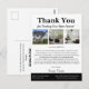 Esta tarjeta postal de agradecimiento para casa abierta de bienes raíces única es la forma perfecta para que los agentes inmobiliarios dejen una impresión duradera en los posibles compradores después de una casa abierta. Con un elegante fondo en blanco y negro, esta tarjeta postal elegante y profesional está diseñada con una plantilla de mensaje de agradecimiento personalizable, una plantilla de tres fotos de la propiedad y un código QR, lo que la convierte en una poderosa herramienta de seguimiento. Expresar gratitud de manera reflexiva y personalizada puede ayudar a fortalecer las relaciones con los posibles compradores y reforzar su marca. Ya sea que sea un agente experimentado o esté empezando, esta tarjeta postal de agradecimiento es una adición esencial a su estrategia de marketing inmobiliario.