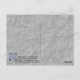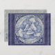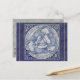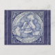 En ricos tonos azules sobre gris y blanco, mi interpretación de un diseño antiguo incluye tres conejos o arenas que comparten sólo tres orejas y se persiguen en círculo. Mi arte fue pintado originalmente en baldosas de vidrio y horno como un mural de cuatro baldosas. El verso folclórico tradicional en la frontera dice, "Conejos tres y orejas como pocos / Sin embargo cada conejo tiene sus dos." Este antiguo diseño se encuentra en el arte antiguo y la arquitectura de toda Europa y el oriente medio. Las esquinas de las baldosas están decoradas con pájaros estilizados y motivos florales inspirados en cerámicas azules y blancas de estilo chinoiserie. El fondo es azul texturado con rayas grises finas. El reverso de la postal es gris claro texturado. Una postal única, caprichosa y elegante, adecuada para cualquier ocasión. Obra de arte y diseño original de Tuzi Williams.