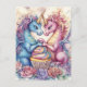 Two adorable dragons with unicorn horns in front of a cupcake and flowers in a watercolor style