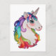 Postal Unicornio acuarela con pelo de arco iris