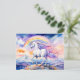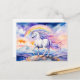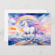 Postal Unicornio bajo nubes de arcoíris pastel suaves