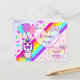 Personaliza estas adorables invitaciones de cumpleaños para niñas con un unicornio mágico, corazones, lazos, globos, lluvia de colores, mariposa y arcoíris. Cumpleaños de niña en rosa, morado, azul, amarillo y naranja.