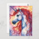 Postal Unicornio Con Pelo Rojo