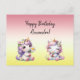 La imagen frontal muestra dos unicornios felices, con margaritas, sobre un fondo pastel degradado. El texto en la parte frontal dice "Feliz Cumpleaños, Alexandra!", y es personalizable. Perfecto para enviar a una chica que ama los unicornios y/o las margaritas.