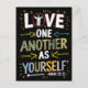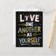 Presentando las palabras se aman como a ti mismo en letras audaces y coloridas, enfatizando la importancia de difundir el amor y la compasión.
