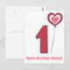NewParkLane - Tarjeta postal de cumpleaños para niños de un año, que presenta un gran número uno en rojo y un globo de cumpleaños en forma de corazón, en rojo y rosa, y un dulce deseo de "¡Feliz Cumpleaños!".